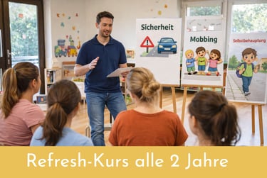Zur Sicherung gleichbleibend hoher Qualität ist alle zwei Jahre ein verpflichtendes Refresh-Training vorgesehen, das die Zertifizierung erneuert und aktuelle pädagogische Standards des Präventions- & Handlungskompetenztrainings berücksichtigt.
